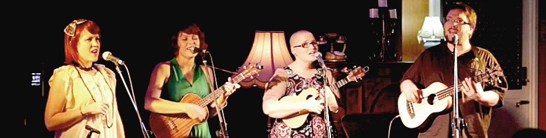 This delightful foursome will send you swooning. Marked by close harmonies and featuring concert, tenor, banjo, baritone and bass ukulele along with melodica and kazoo, the pockets bring you original and cover tunes brimming with frivolity, nostalgia and romance.  Setting vocal interludes reminiscent of a 1940s radio show within the diverse genres of jazz, pop & folk these songsters will charm your socks off.